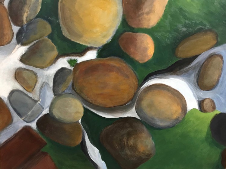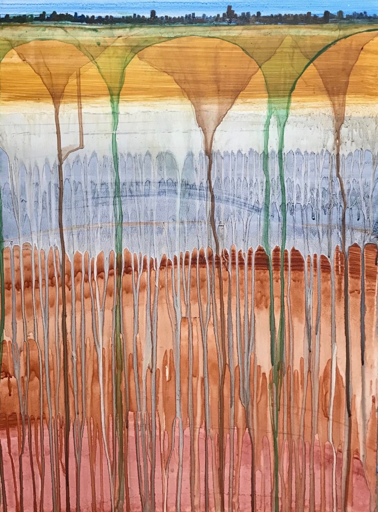 Most of these pieces in this slide show are either acrylic on a wood board or oil on canvas. Sizes vary between 30 x 24 “, and 20 x 16″. There are two monotypes: 24 x 30″ and two smaller paintings on wood: 10 x 6 ” and 10×10″.